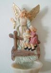 Un petit bénitier avec des figurines d'enfants et d'un ange les protégeant.