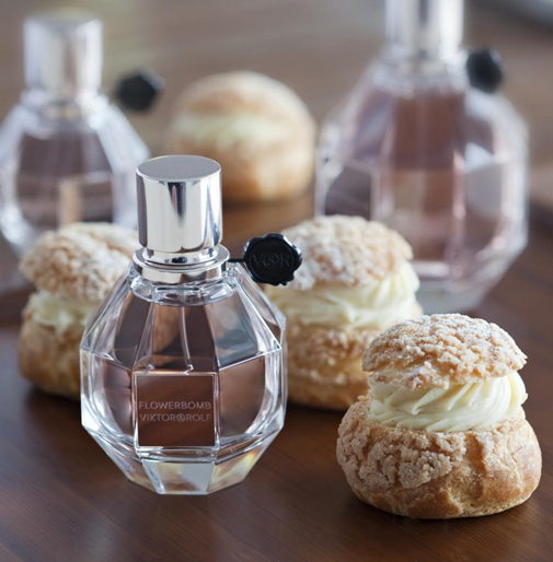 When perfume rhymes with pastry... Taste and smell are two senses that inspire pastry chefs as well as perfumers, and collaborations between the two worlds continue to flourish. Philippe Conticini declined the fragrance Flower Bomb from Viktor and Rolf in a rose jasmine vanilla chou (October 2013) ; whereas Pierre Hermé created a peaches and cumin pie for Rochas (2012).