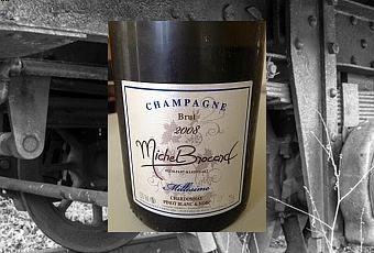 Champagne, Michel Brocard Brut millésimé 2008 : Un nez séduisant de pomme grany, tarte aux pommes, note pêche de vigne, pointe de foin, fougère, fond roche crayeux. La bouche est tendue, bulle un peu agressive, belle sapidité, pomme, tarte tatin, note citron, chèvrefeuille, fond léger miel. La finale est tendue, un peu vive, voir acérée quand même mais belle persistance de pomme, tarte tatin, note léger caramel, fond de foin, fougère et craie. B-TB 87 (15)Sur l'entrée :