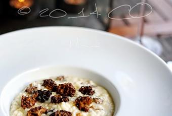 Pour ce plat, une base très simple de risotto, rendu très crémeux grâce à un velouté d’asperges blanches, accompagnées d’une poêlée de morilles fraiches ! Mariage parfait !Risotto crémeux aux asperges blanches et morilles
