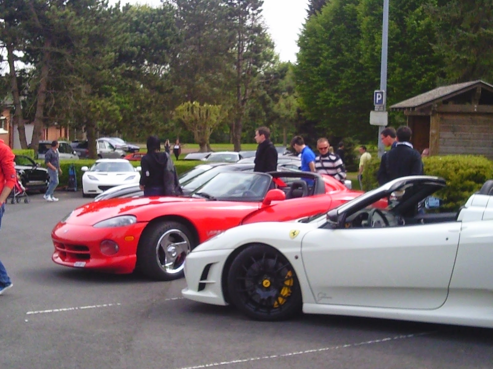 Puis, après être rentré manger, Marge et moi sommes montés sur les selles de nos vélos pour une sortie prévue d'une vingtaine de bornes. Objectif, atteindre la tour de communication qu'on voit au loin... Sauf qu'arrivé dans le village de Boiry Ste Rictrude, on commençait à voir du monde: il y était organisé un rassemblement de véhicules avec baptême en Ferrari, Chevrolet, Porsche et autres Dodge.J'adore la Viper. Alors...Ce modèle, le RT/10, est mon favori !!!! Il y avait aussi une SRT, de couleur bordeaux, magnifique !