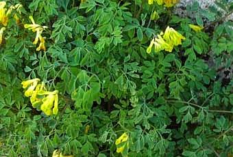 Pseudofumaria lutea (Corydalis lutea), Corydale jaune, Fumeterre jaune, est une espèce saxicole rare des vieux murs et des rochers