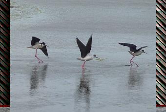 A deux reprises, dans le marais des Bris (Saint-Trojan), j’ai vu de très jolis échassiers, façon nénettes qui papotent en léchant les vitrines. Ce sont des échasses blanches, des oiseaux migrateurs qui hivernent en Afrique et se reproduisent en Europe.