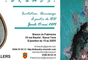 Chers amisJ’ai le plaisir de vous convier le 15 mai à partir de 18 h au vernissage de l’exposition “Brumes” que je présente avec Mi Baudry à la Maison de l’Architecture et du Patrimoine, 24 rue Baudot à Basse-Terre.