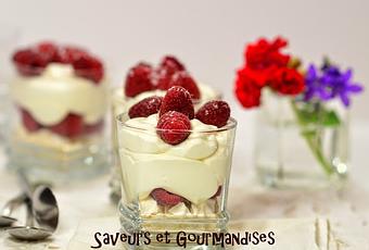INGRÉDIENTS :P/4 verrinesDes meringues (4 grosses ou 12 petites) : achetées ou maison (recette ici)250 gr de framboises200 ml de crème fraîche entière2 cuillères à soupe de sucre glace100 gr de mascarpone2 cuillères à soupe de lait ou d'eau½ jus de citron1 feuille de gélatine.