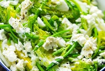 Et y faudrait que je ne sois pas le seul à me tenir à ce genre de bonnes résolutions non-négociables. Parce que là même avec mon sang de pingouin en p'tit polo col ouvert quand j'me prends un coup de vent presque glacé j'ai presque le frissonnement qui me prendrait !Du coup salade tout en fraîcheur comme si c'était vraiment l'printemps… C'est vraiment l'printemps d'ailleurs !!!Salade sucrines, asperges sauvages et fetaIngrédients : 4 sucrines – 120g de feta – 1 petit bouquet d'asperges sauvages – 4 ou 5 oignons nouveaux – 2càs d'huile d'olive – 1càs de vinaigre de Xérès – sel et poivre Commencez par cuire les asperges sauvages pendant 3 minutes dans de l'eau bouillante salée. Passez-les ensuite dans un bol d'eau bien froide puis séchez-les.Préparez ensuite la sauce, mettez dans un bol 30g de féta, l'huile d'olive et le vinaigre, salez, poivrez et mixez le tout finement.Coupez les oignons en fines tranches. Coupez les sucrines en 6 dans le sens de la longueur.Déposez les sucrines au fond d'un plat déposez par dessus les asperges, parsemez les oignons puis défaites la feta et parsemez-la aussi.Arrosez de sauce, mélangez et dégustez sans attendre sous la chaleur du printemps…