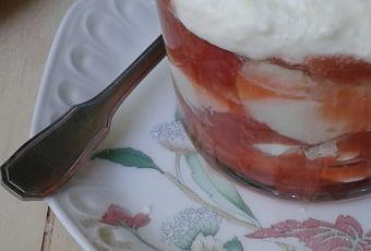 Laissez refroidir la compote de rhubarbe~fraise. Il faut qu’elle soit bien froide pour réaliser le trifle. Vous pouvez la préparer la veille, ou la placer, une fois refroidie, une quinzaine de minutes au congélateur.