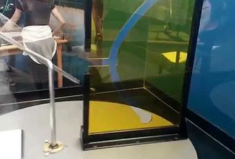 Au musée des sciences de Valence (Espagne), un internaute a remarqué une oeuvre très étonnante : une barre droite tournant sur un axe passe au travers d’un trou incurvé.