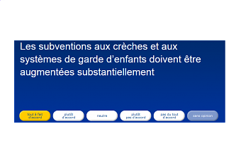 C’est très simple, ça prend une dizaine de minutes et à la fin vous obtenez votre photomaton Européen. Il suffit de donner son opinion à propos d’assertions dans des domaines tels que :