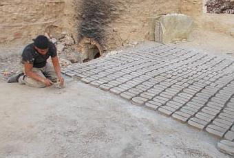 Une fois les briques formées avec de l'argile, elles sont cuites de façon très écologique dans un four.