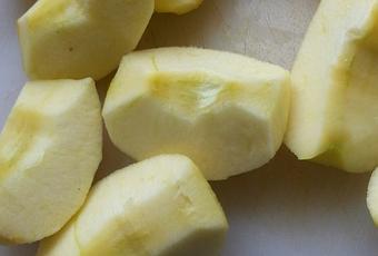Après avoir bien lavé mes pommes, je les épluche et je les coupe en morceaux.