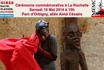 - Samedi 10 mai à 15h à La Rochelle : commémoration allée Aimé Césaire au Parc d'Orbigny tout en haut de l'allée du Mail, le long de la mer. A cette occasion, Georgette Kala-Lobé, artiste, danseuse et chorégraphe interprétera "Libre", une performance dansée pour le respect de la dignité de la vie. 1794 - 2014 : cette année marque également le 220e anniversaire de la première abolition de l'esclavage. Jean-François Fountaine, maire de La Rochelle et l'équipe municipale convient les Rochelais à se joindre à cette cérémonie à laquelle participe également des écoliers de Bernard Palissy et le Club Unesco local.