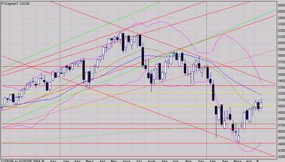 L’attaque des 5100 points a néanmoins eu lieu mais la hausse progresse lentement et pratiquement "à plat" si on observe les bougies quotidiennes depuis plus d'un mois maintenant.