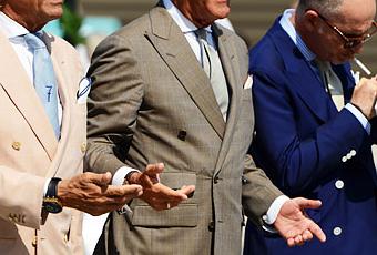 Pour ceux qui ne le connaîtraient pas, Renato Plutino, c’est l’homme que l’on voit partout dans les allées du Pitti Uomo. C’est simple, si on ne connaissait pas son activité, on le prendrait pour l’organisateur du salon (qui n’est autre que Gaetano Marzotto – rien à voir, donc). Régulièrement photographié, notamment aux côtés de Lino Ieluzzi dont il assume avec prestance les choix stylistiques, ou de Gianni Dal Cortivo, propriétaire du magasin Tailor’s & Ties à Vérone, il représente un peu l’Italien vieille école (ce qui n’a rien de péjoratif sous ma plume), l’Italien qu’aiment à se représenter habituellement les non-Italiens : expansif, bronzé, les cheveux plaqués en arrière, parlant beaucoup avec les mains, et, bien sûr, mettant un point d’honneur à ne ressembler qu’à lui. Rien d’étonnant, me direz-vous, pour un homme qui a commencé sa carrière dans la mode en 1973 (il n’était alors qu’agent commercial), jusqu’à créer quelques années plus tard son propre showroom à Milan (où figurent aujourd’hui les collections Jacob Cohën, Brunello Cucinelli et Fabiana Filippi).