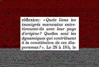 Les liens entre les immigrés marocains et leurs pays constituent donc des diaporamas !!! et si l'on suit le rédacteur de cette perle, à la conférence prévue pour en expliquer les dynamiques seront projetées des diasporas . Un massacre !