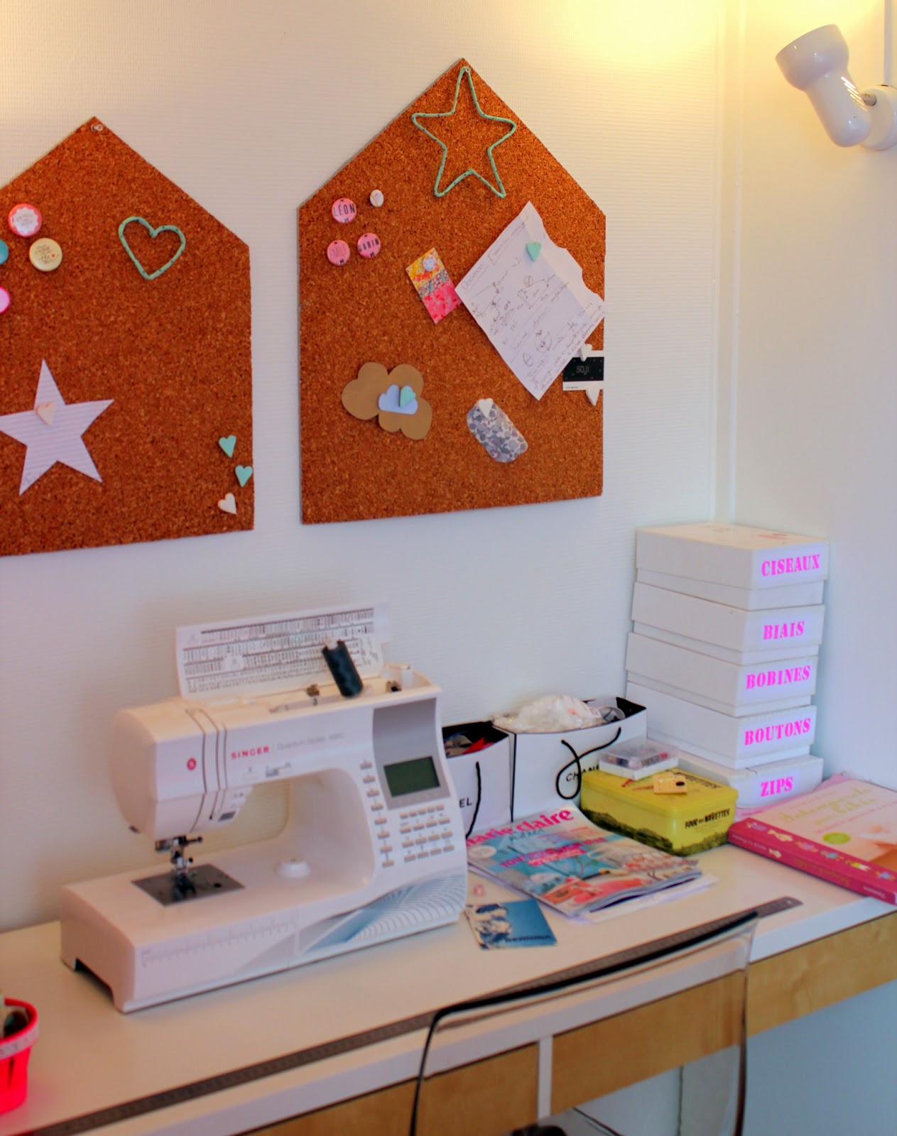 Pour le moment il me plait et je m'y sens bien. Pas encore complètement optimisé, ces boites c'est pas hyper pratique, je vais m'y installer petit petit!!Et pour continuer à rêver, si à chaque déménagement j'ai un peu plus de m2, la prochaine fois j'aurai: de la place pour une surjeteuse, ma machine sera aussi une brodeuse, j'aurai un espace table de coupe, un mannequin de couture et mes tissus auront leur dressing et seront rangés sur cintres...héhéhé si on peu plus rêver...