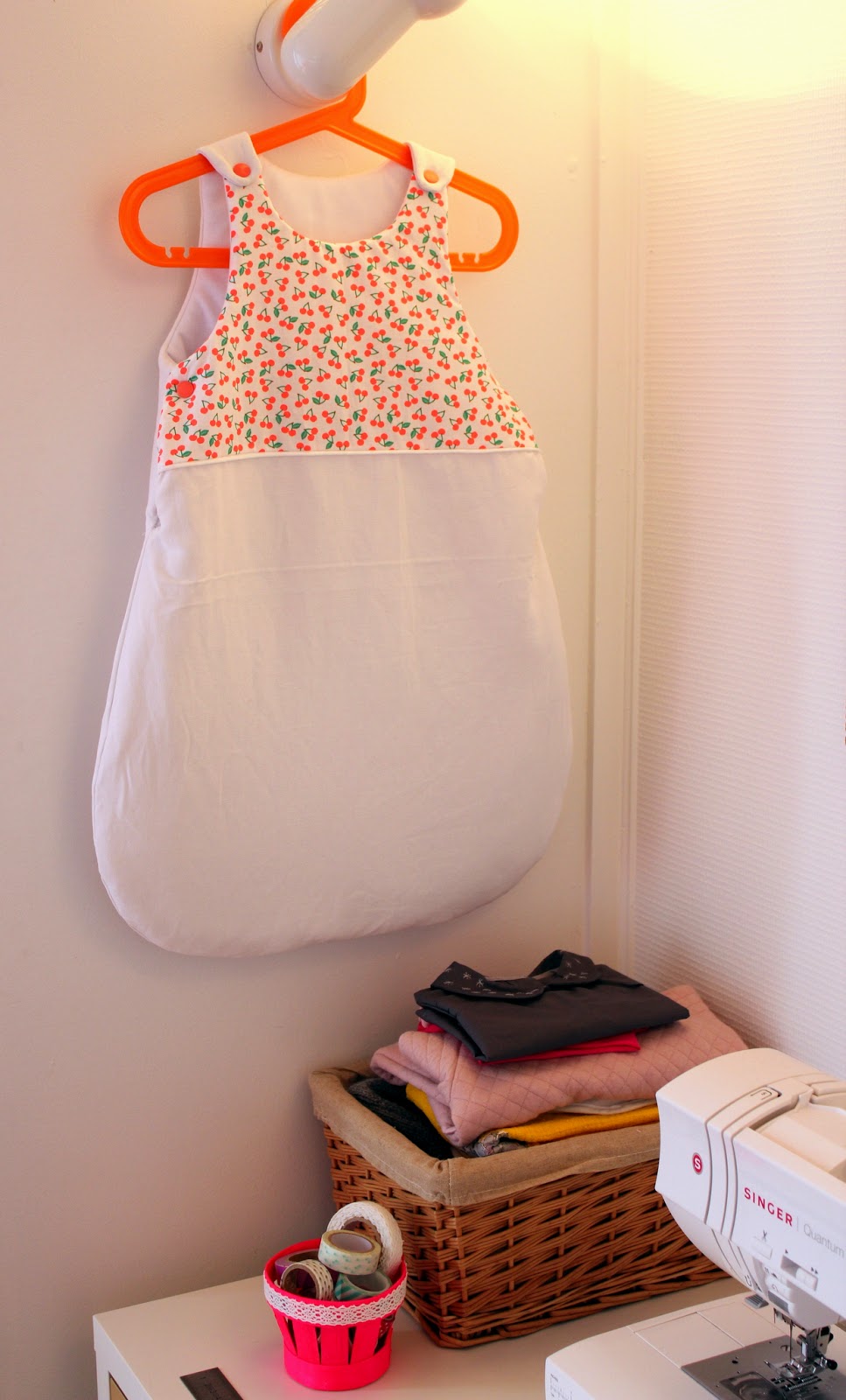 Je vous explique ça comme si c'était un truc de dingue, mais oui ça l'est ! Pas besoin de courir dans tout l'appart pour chercher un tissu, pas besoin de sortir et ranger la machine d'un placard quand on en a besoin, et en plus il est cocooning mon petit coin!