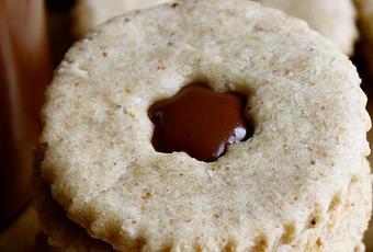Laisser refroidir les biscuits, tartiner la face intérieure de pâte à tartiner et couvrir d'un biscuit sans trou comme sur la photo.