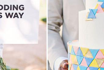 Le style géométrique est très tendance et on l’aime partout: sur la table, le gâteau, dans les airs et sur les cartons d’invitation !
