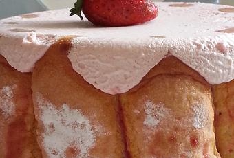 Mettre la moitié dans le moule, mettre des fraises coupés en quatre dessus et recouvrir avec le reste de mousse. Tapissez le dessus de biscuit imbibé et mettre au frais toute une nuit!