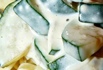 Servir 150 gr de pâtes par personne et napper de sauce aux courgettes.