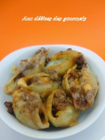 Répartir les conchiglies cote à cote dans le plat, couvrir de sauce
