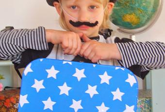 C'est une idée qui à ravi le Boy tout de suite car depuis il passe ses journées avec cette petite valise et son attirail d'aventurier chasseurs de monstres. D’ailleurs je suis sure que vous ne l'avez même pas reconnu déguisé comme ça ! ^_^