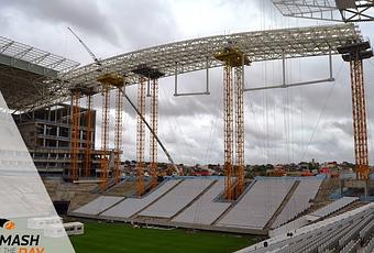 Dans un mois, les yeux du monde entier seront rivés sur le Brésil et son organisation de la Coupe du monde de football. A l’image des Jeux Olympiques, les performances sportives ont une place prépondérante mais il ne faudrait pas oublier le quotidien des brésiliens ainsi que des millions de gens qui se rendront dans les différentes villes brésiliennes. Ainsi, qui dit football, dit forcément stade et force est de constater que l’avancement des travaux dans certains d’entre-eux fait froid dans le dos. Et c’est surtout l’Arena Corinthians, ou stade Itaquerao, qui donne des sueurs froides au comité d’organisation. En effet, ce stade sera le premier à être présenté à la planète en mondovision car il accueillera le match d’ouverture de la compétition qui opposera le pays hôte, le Brésil, face à la Croatie. Mais alors où en est-on du côté de Sao Paulo? Avec un peu (beaucoup) de chance, celui-ci sera prêt à temps avec tout ce que cela induit comme incertitude et dysfonctionnement potentiel. Les gradins provisoires ne seront en effet tout simplement pas livrés à temps. Les délais ont été repoussés et la mort d’un ouvrier en mars avait logiquement interrompu les travaux. Depuis, la date du 10 juin avait été avancée pour une partie des tribunes provisoires mais le délai ne sera pas respecté, annonce O Jogo. Du coup, la capacité du stade sera de moins de 40 000 spectateurs ce dimanche alors qu’il doit y en avoir plus de 69 000 pour le match d’ouverture de la Coupe du monde…Il va falloir que tout le monde s’active car il n’y aura pas que certains joueurs qui se retrouveront sur la touche!