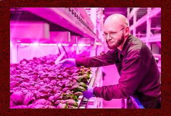 En agriculture verticale on utilise un éclairage LED spécialement calibré pour optimiser les différents stades de croissance, sans augmenter la température.