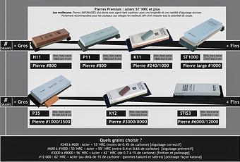 adaptée à ses couteaux ainsi qu'à son exigence personnelle, et bien en voici un condensé sous forme d'une infographie qui devrait, nous l'espérons, faciliter encore votre choix.