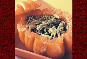 Aujourd’hui avec mes élèves de la MJC de Sceaux j’ai eu envie de faire de belles tomates farcies. Ce matin quand j’ai fait les courses de belles coeur de boeuf me faisaient les yeux doux… Mais pour pas avoir l’air de n’utiliser que les restes j’ai eu l’idée de leur donner un aspect exotique en ajoutant des pignons. Pas de pain, pas de riz, donc c’est vraiment des tomates légères légères….Bon appétit