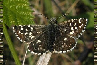 L'Hespérie de la Mauve, Pyrgus malvaeL'espèce appartient à la famille des Hesperiidae et à la sous-famille des Pyrginae. L'Hespérie de la Mauve vole de fin avril à début juillet, avec en général une seule génération par an. Certaines années, une seconde génération apparaît en août. Les oeufs sont déposés un à un sur la face inférieure des plantes hôtes, généralement du genre Fragaria (fraises), Potentilla ou Malva (Mauve). Les chenilles se confectionnent un abri en reliant deux feuilles par de la soie et passent l'hiver au stade de chrysalide ( Cliquez sur la photo pour agrandir).
