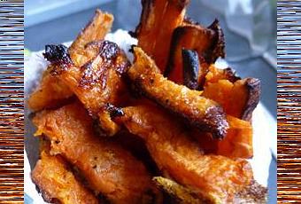 Commencez par laver puis éplucher la patate douce. Coupez-la ensuite de manière à obtenir des bâtonnets les plus réguliers possibles (c’est important pour la cuisson, mais vu la forme de la patate…pas évident !).