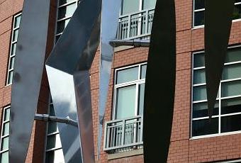 Le tranchant des lames, la rondeur de l’immeuble, le ciel bleu qui se reflète sur le métal,