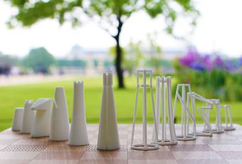 Voici, ZWEIG n très bel échiquier bousculant les codes, ou chaque pièce va se différencier par sa forme et non par sa couleur, une symbolisation abstraite de la dualité de notre esprit, du combat perpétuel en chacun. Su un plateau de bois massif gravé viennent délicatement se poser 32 pions de plastique imprimés en 3D.