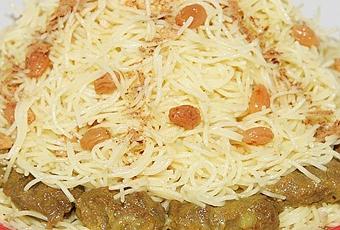 Seffa signifie "cheveux d'ange à la vapeur" et medfouna "enterré" puisqu'on enterre la viande entre deux couches de pâte.