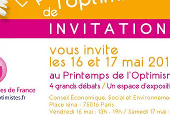 À l’occasion du Printemps de l’Optimisme qui se déroulera les 16 et 17 mai 2014 au Conseil Economique, Social et Environnemental à Paris, la Ligue des Optimistes de France, avec son partenaire Germe, vous invite à participer aux nombreux Dîners des Optimistes organisés par ses sympathisants bénévoles dans toute la France.