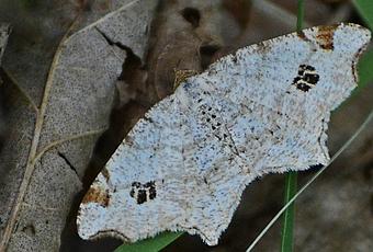 Les ailes antérieures sont blanchâtres suffusées de gris, avec une encoche grisâtre peu profonde près de l'extrémité et un groupe de 5 taches irrégulières, brun-noir, plus ou moins nettes selon les individus.