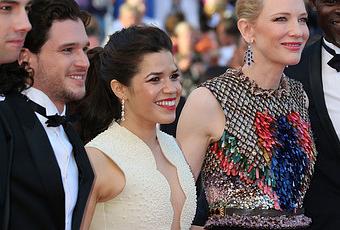 Si sa blondeur et son port altier aurait fait de Cate Blanchett, une parfaite mère des dragons, impeccable comme à son habitude dans sa robe Givenchy dont les détails du bustier (joli clin d’oeil), imitait des écailles, c’est à ma nouvelle chouchoute, America Ferrera que revient pour moi le titre de Khaleesi. Déjà adorable, jusqu’au détail des chaussures pour le photocall le matin en jupe crayon orange et polo jaune Louis Vuitton, elle a atomisé le tapis rouge dans sa robe Georges Hobeika. Même si le bustier perlé largement décolleté semble lui écraser la poitrine, il n’ ya pas à chichiter, elle était magnifique, demandez donc au fan qui s’est jeté à ses pieds…