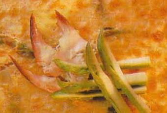 Décortiquez le crabe, émiettez sa chair grossièrement. Fendez les asperges égouttés en quatre.