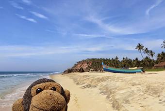Varkala est tout au sud de l'Inde, sur la côte ouest, dans l'État de Kerala. Et je dois le dire d'emblée, je ne suis pas un grand partisan des plages où les riches touristes s'échouent sous des parasols qu'ils ont loués au gros prix.Déjà en janvier, les températures sont particulièrement élevées à Varkala. De 11 h à 16 h, la chaleur intense, le soleil qui plombe, peuvent entraîner des ennuis de santé assez important. Il faut prévoir le coup.