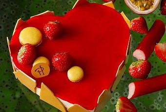 Déclinée sous la forme d’un cheesecake, Céleste se réinvente dans un nouveau jeu de saveurs entre le fruit de la Passion et le mélange fraise-rhubarbe, mis en valeur par le contraste des textures. Sur un fond de pâte sablée, le moelleux du cheesecake au fruit de la Passion, le mouillé du biscuit imbibé du même arôme, l’acidité de la compote de rhubarbe aux fraises et le mousseux de la crème légère au cream cheese se superposent de façon harmonieuse mais distincte, pour mieux révéler le goût fruité et ensoleillé du fruit tropical.