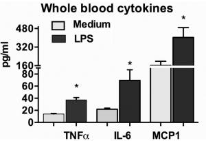 Lorsqu’en laboratoire, les chercheurs testent les effets de concentrations élevées d’endotoxines dans le sang, ils constatent l’augmentation de certains autres marqueurs inflammatoires.