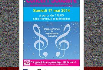 Rendez–vous samedi 17 mai 2014 à 17h à la salle Pétrarque de Montpellier pour assister à ce concert solidaire.