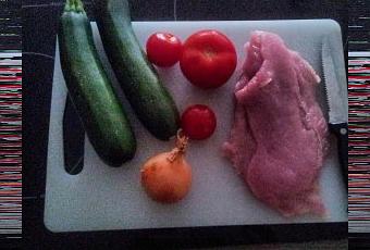1. Epluchez les courgettes et coupez en dé les escalopes, les courgettes, l’oignon, les tomates et les champignons