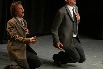 Ils se croisent une fois, deux fois… La troisième fois, ils pensent se reconnaître, cherchent en vain et le plus grand tend sa carte de visite au plus petit. Celui-ci, naturellement, tend la main pour la prendre, mais le premier ne la lâche pas. Les premiers rires jaillissent de ce geste : tendre sa carte de visite (précisant son identité) n’implique pas la donner. Pourtant le geste est simple. Mais que faire d’une carte de visite reçue, sinon la jeter avant qu’elle s’ajoute à celles qui s’accumulent inutiles… Le peu de mots qu’ils disent (« allo », « non », et quelque latin de cuisine) ne sont, au fond, que des gestes de la bouche, exactement comme ceux des mains, de la tête, des jambes. Cependant, ces deux-là ne font pas la critique de nos usages, ils essaient de s’y conformer : tristesse du deuil, amabilité de l’ange, etc. Ils n’y parviennent pas sans vraiment en avoir honte : leur démonstration de hip hop est hilarante et leur naïveté est touchante. Nous rions avec eux de ce qui pourrait nous émouvoir, nous effrayer dans la vie courante. Et que dire alors de la dernière scène, celle de la séduction ? Sans blesser personne, elle est irrésistible.
