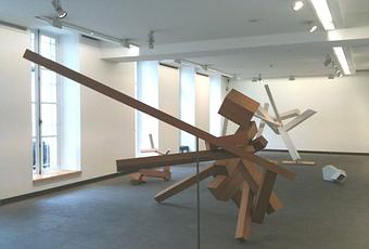 A la galerie Karsten Greve, la couleur intervient dans certaines pièces et ajoute à la dynamique de l'ensemble : "L’artiste commence à peindre le bois pour en quelque sorte le transformer : la couleur permet de changer la forme, de l’enrichir d’un sens qui autrement lui échapperait. Un élément se fait par exemple plus épais et volumineux s’il est peint en noir : la couleur modifie la perception de la forme et, par conséquent, la présence de la matière devant l’observateur."