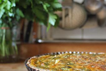 Samedi, 11h30, le réfrigérateur est désespérément vide et pourtant, on commence à penser au repas. Tiens tiens, voilà les fanes d'une botte de carottes mises de côté pour une utilisation ultérieure. Pourquoi pas en faire une tarte? D'ailleurs il y a cette petite brique de crème végétale rescapée d'un essai de panna-cotta. Ah zut, pas d'oeufs dans le frigo, en revanche ce reste de soupe là... on doit bien pouvoir en faire quelque chose.