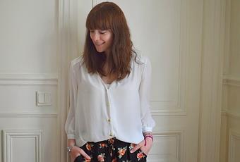 En avant-première aujourd'hui, le pantalon maudit, redouté de tous, ou, plus communément appelé le pantalon "loose fit" ou encore le "pyjama". Rien de plus confortable que ce type de pièce : loose, en tissu tout doux et vaporeux. Pas franchement saillant, il peut vite vous rajouter une dizaine de kilos et vous transformer en gros machin informe. Mais que voulez-vous : j'adore. J'ai déniché celui-ci, chez Forever21 pour une bouchée de pain, et je suis tombée amoureuse de son imprimé. Alors pour ne pas ressembler à un sac à patate, j'ai sorti une petite blouse blanche et une paire de salomé à talon. Ce pantalon est mon nouveau meilleur ami pour les jours ensoleillés (pas encore actualité on est d'accord), où on n'a aucune envie d'être serrée dans un slim.