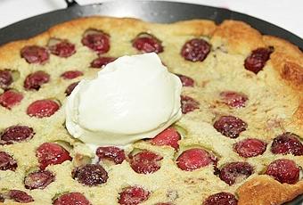 - Verser cette pâte sur les cerises, dans la poêle. Laisser cuire 5 minutes.